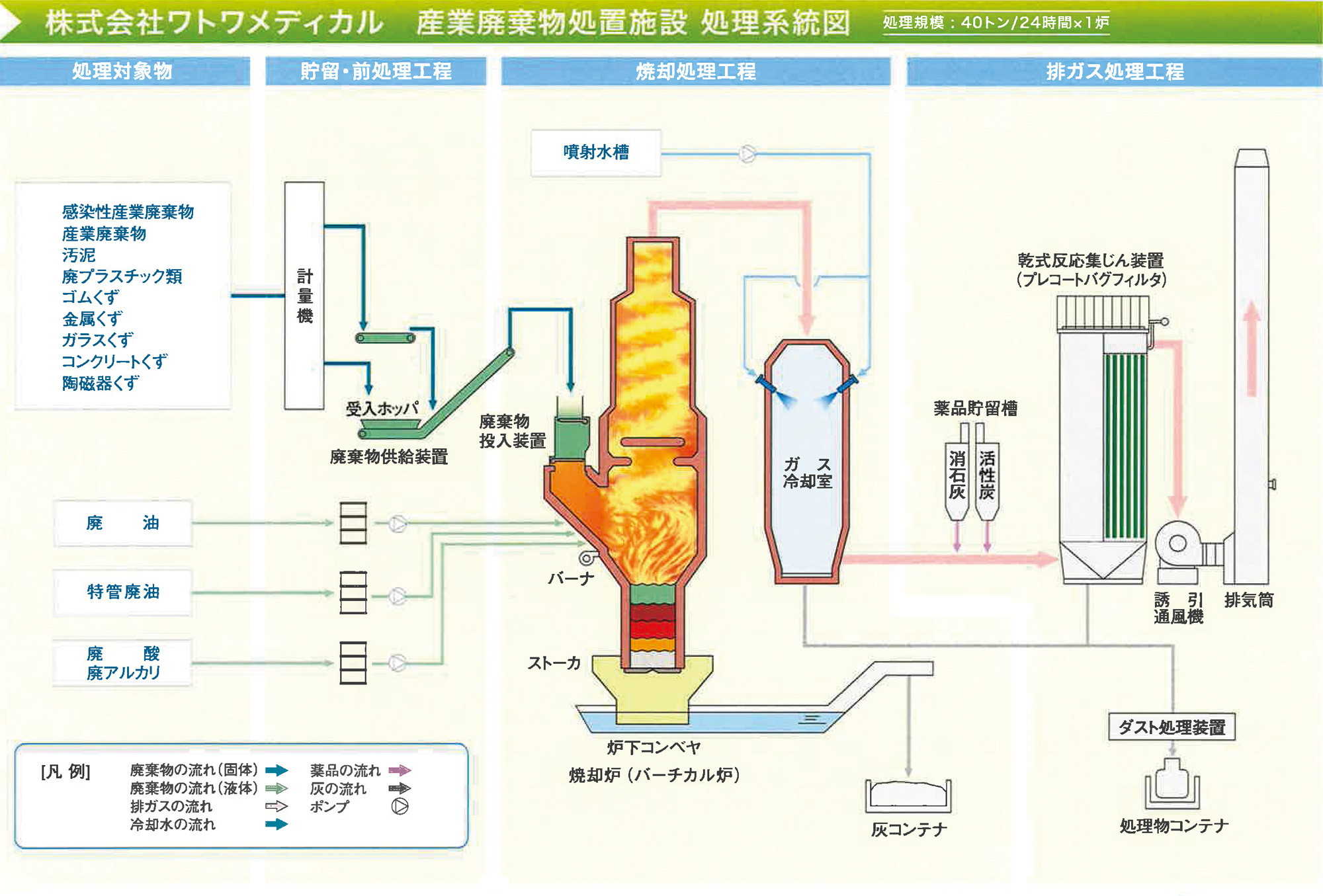 医療廃棄物の収集運搬から焼却処分までを自社グループ内で一括処理が可能です。